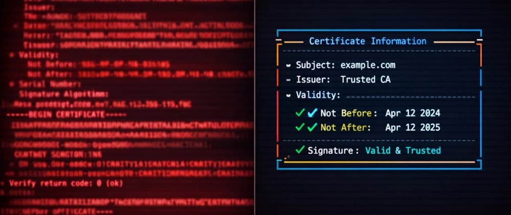 I've been writing software for years. I can hold a lot of random CLI syntax in my head. But openssl never sticks. The subcommands follow no pattern I can internalize, and the flags feel like they were designed by committee across two decades. Which, to be fair, they were.
